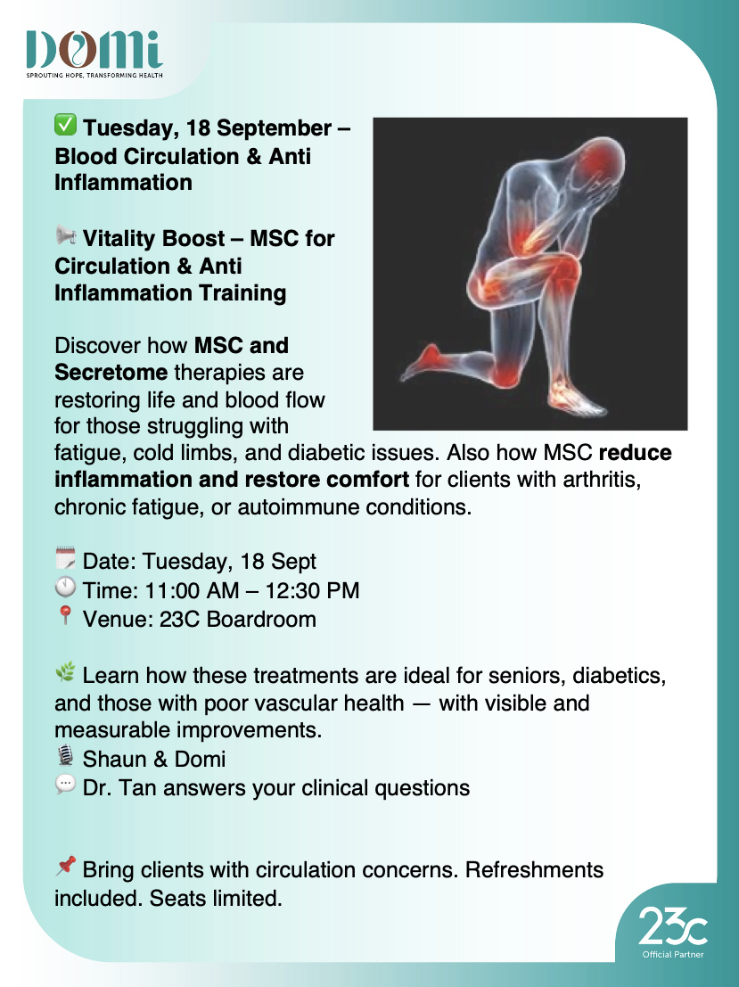 Discover how MSC and Secretome therapies are restoring life and blood flow for those struggling with fatigue, cold limbs, and diabetic issues. Also how MSC reduce inflammation and restore comfort for clients with arthritis, chronic fatigue, or autoimmune conditions.