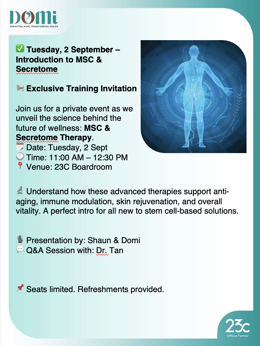 Join us for a private event as we unveil the science behind the future of wellness: MSC & Secretome Therapy.
